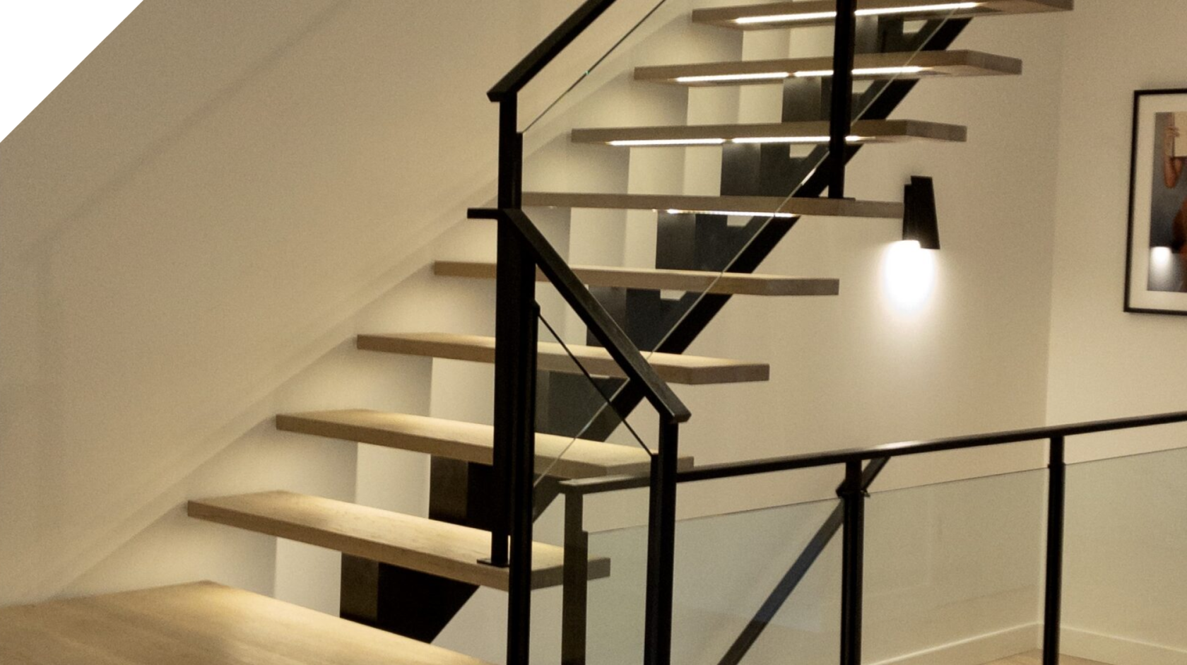 С полностью обшитыми ступенями. Подходят для классических интерьеров, монтируются в домах из любого материала.